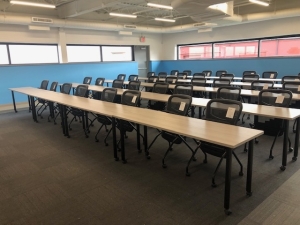 A long term client of EOS was ready for a complete renovation. They have slowly been renovating their entire building and EOS has been providing the office furniture – both new and used. This ongoing project includes cubicles, training rooms, private offices, sit-to-stand desks, conference rooms, and lunch rooms. The lunch room has bar-height tables and stools. The training room has nesting chairs and mobile tables, which can easily be reconfigured from a training room to a conference room in matter of minutes. Most of the cubicles are mid-height which gives the employees seated privacy. The finishes are neutral and coordinate nicely.